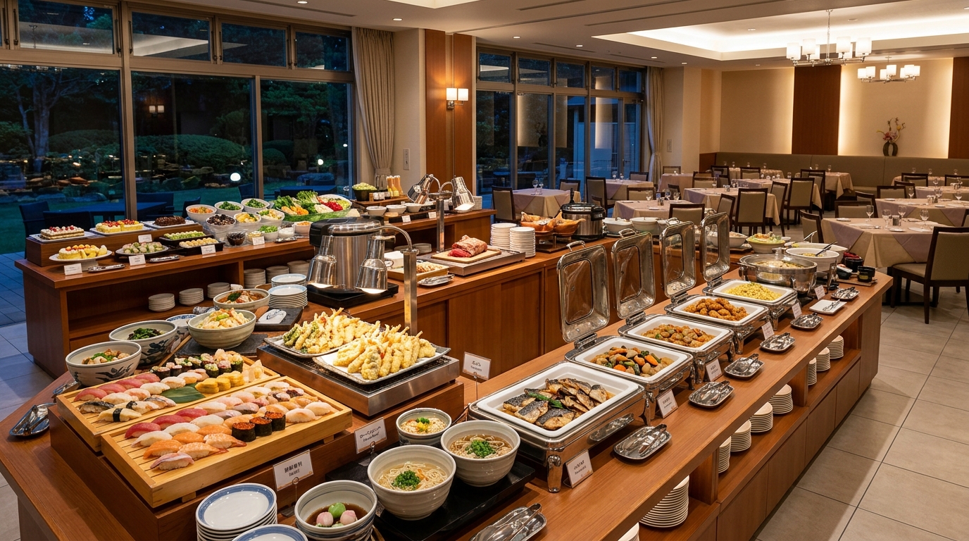 ホテルニューアワジの食事は創作和洋と豪華バイキング。ここまでボリュームがある?と驚く