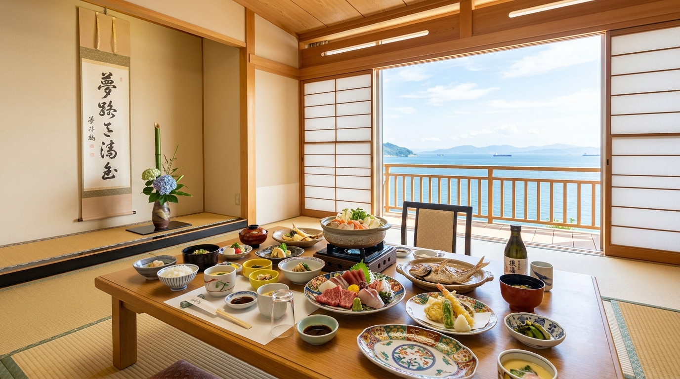 | 夢海游 淡路島 | ★★★★☆ (貸切露天あり) | ★★★★★ (新鮮魚介、ボリューム満点) | ★★★★☆ (ビーチ近い、活動的) | ★★★★★ (24,750円〜) | 3世代・ファミリー・アクティブ派 |