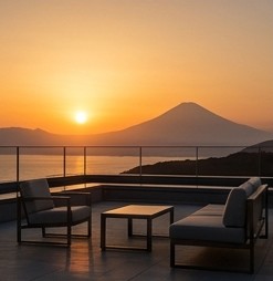 【ルーフトップラウンジ・夕陽・富士山】